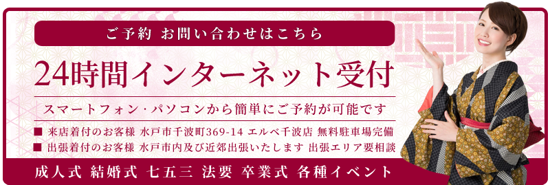 水戸市で着物の来店着付けをお探しなら、エルベ美容室にお任せください。成人式や七五三、卒業式、結婚式など、特別な日の振袖・訪問着・袴・浴衣の着付けを、経験豊富なスタイリストが丁寧に対応いたします。